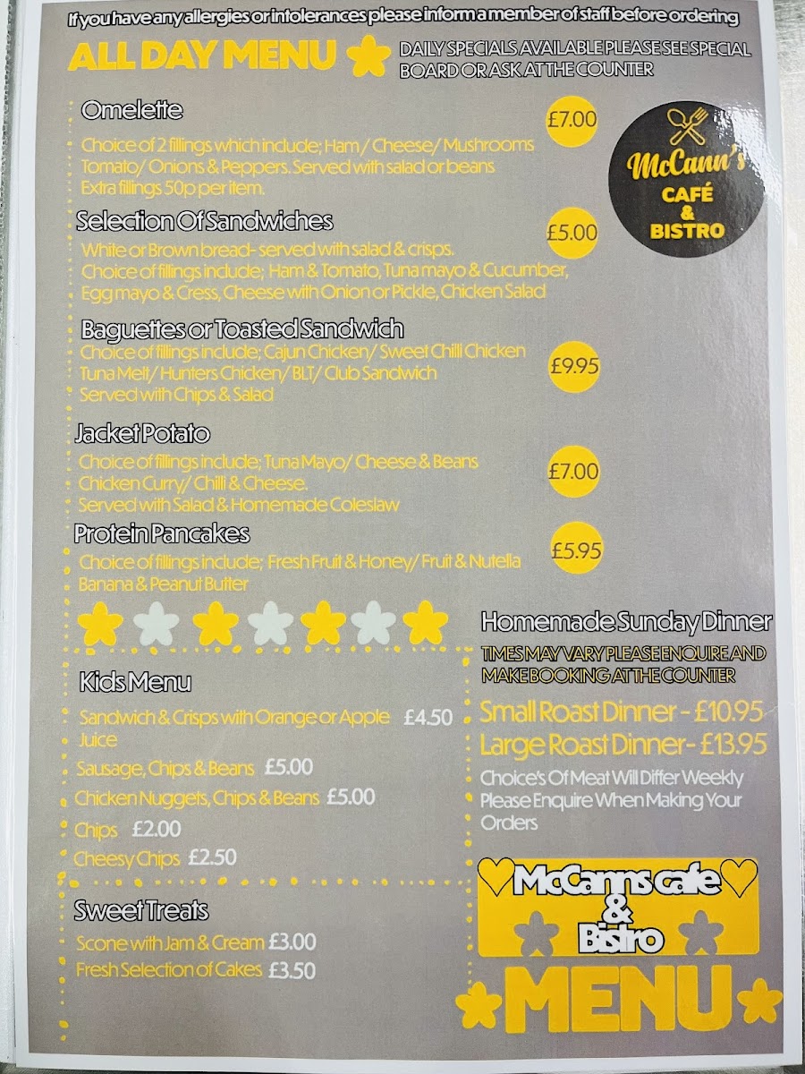 McCanns Cafe and Bistro Menu